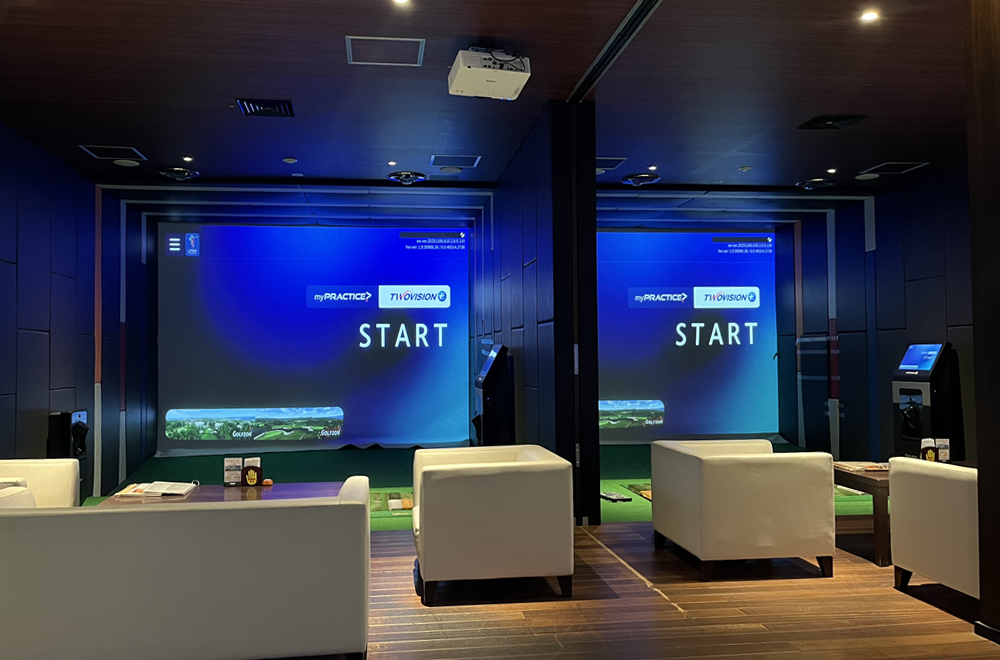ラウンド機器「TWOVISION」はスタンス/ボール位置の傾斜やバンカー/ラフマットが実際のコースをリアルに再現しているとの声が多数で好評です。